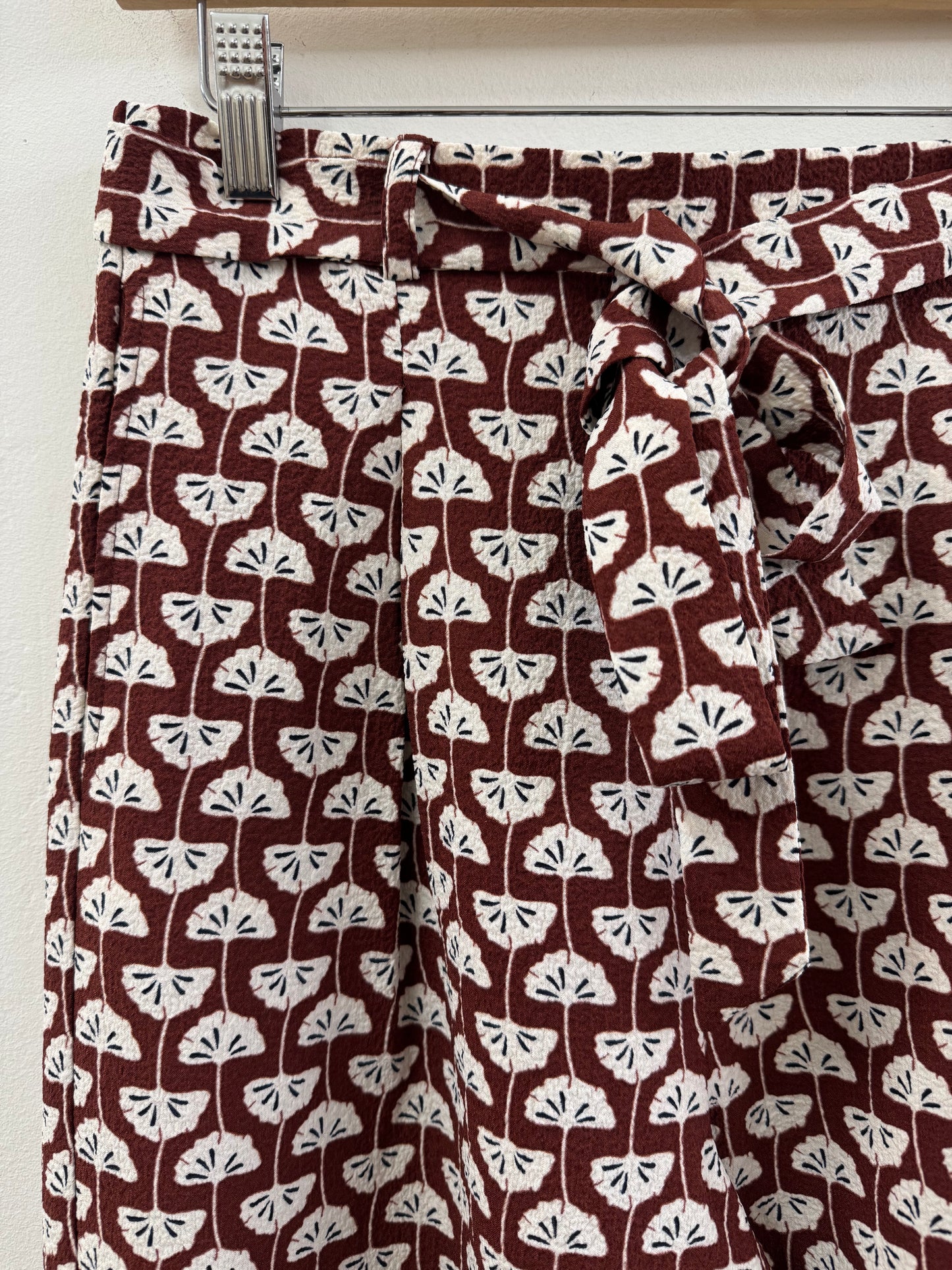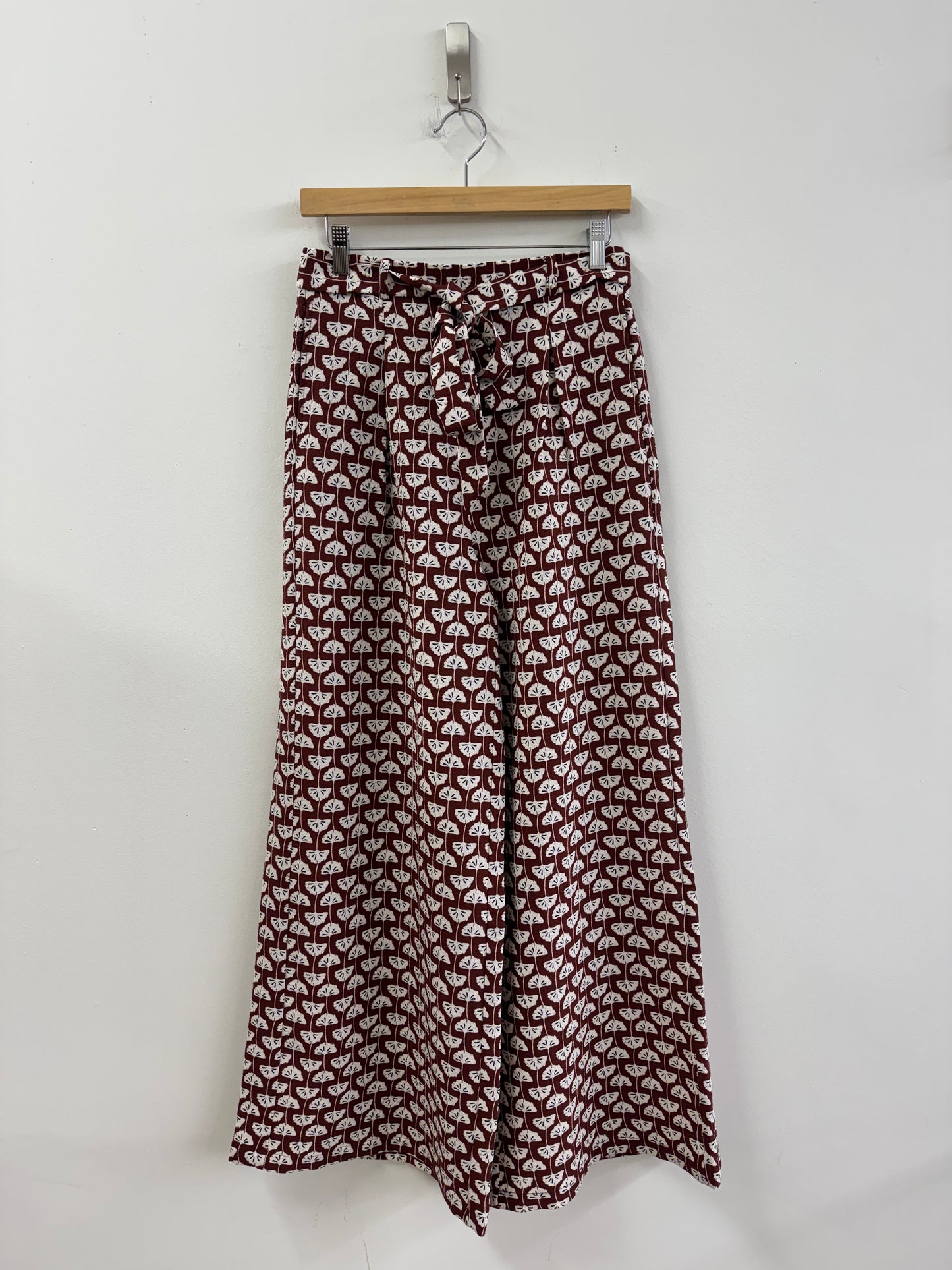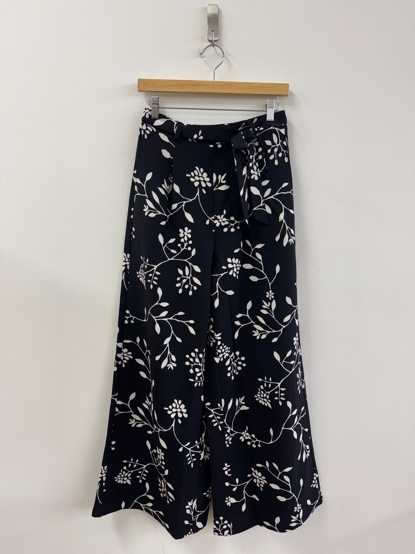 Classic wide leg trouser with pleat front and tie waist.
